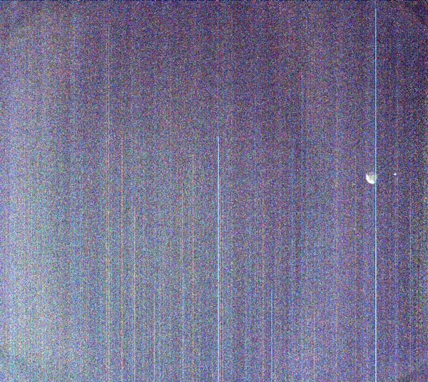 NASA's Curiosity Mars rover used its Mast Camera, or Mastcam, to capture this view of Earth setting while Phobos, one of Mars' two moons, is rising. It's the first time an image of the two celestial bodies have been captured together from the surface of Mars.